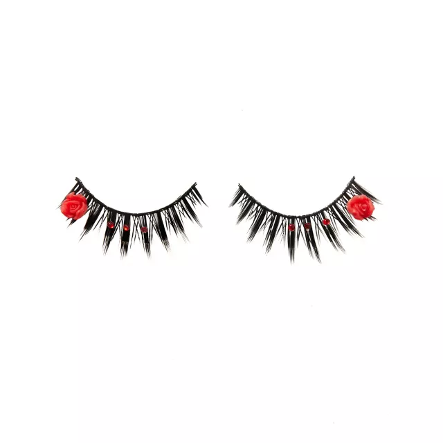 Let your eyes get into character for the holiday with these Day of the Dead Rose Eyelashes! The black eyelashes feature a red rose on the end.