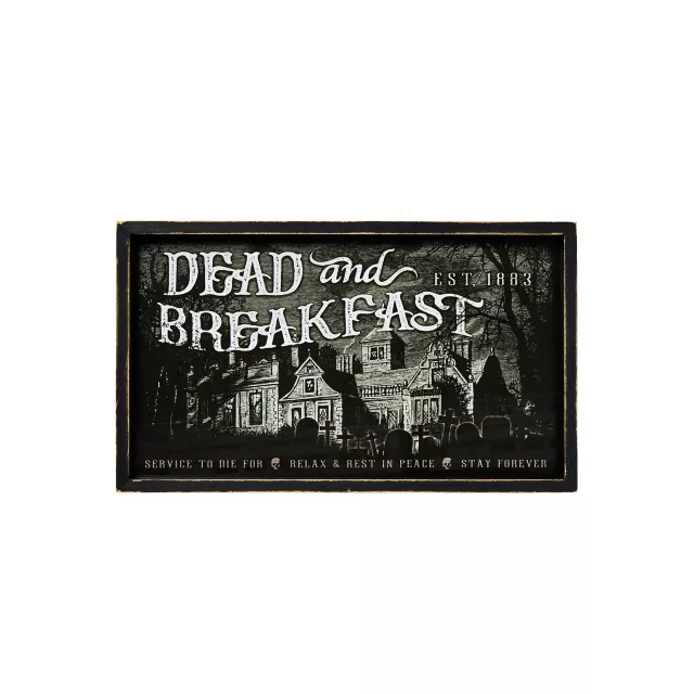 Welcome to the Dead and Breakfast: Our service is to die for! Whether you're decorating for Halloween or adding to your everyday décor collection, this sign is a perfect fit. Hang it wherever you please and embrace your gothic side!