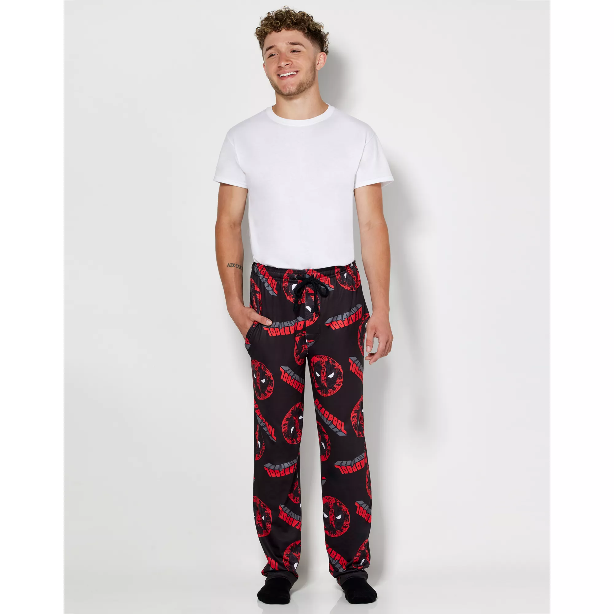 Lounge around in these officially licensed Deadpool Logo Lounge Pants. These pants are perfect for chilling at home and watching your favorite anti-hero.