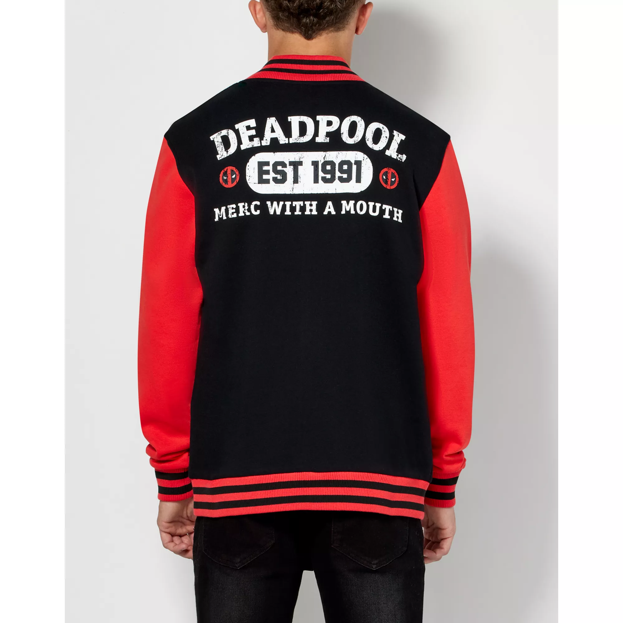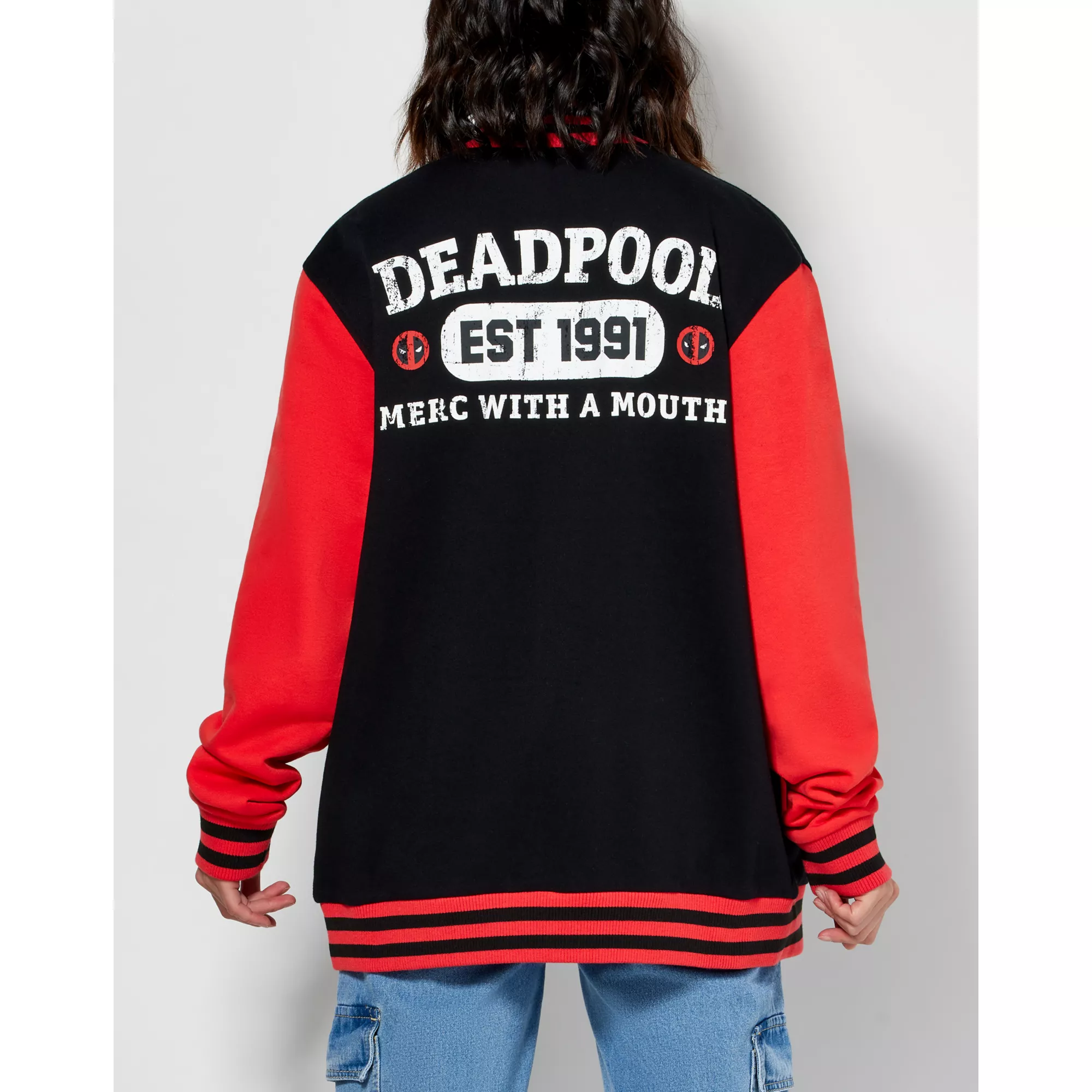 Back to school vibes with this officially licensed Deadpool Varsity Jacket. Whether you're a jock or an anti-hero, this jacket is for you!