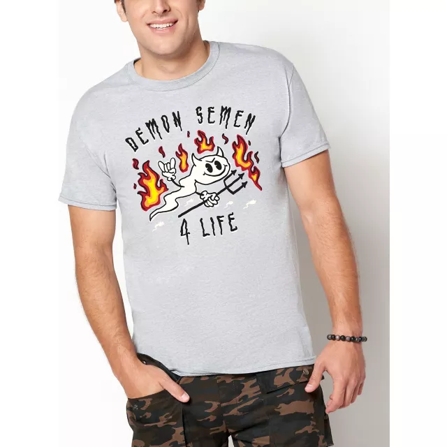 Show off your bold and wacky attitude when you hit the town rocking this Demon Semen 4 Life T Shirt. This stylish tee is a hilarious way to add some personality to any casual look and is sure to make some heads turn.