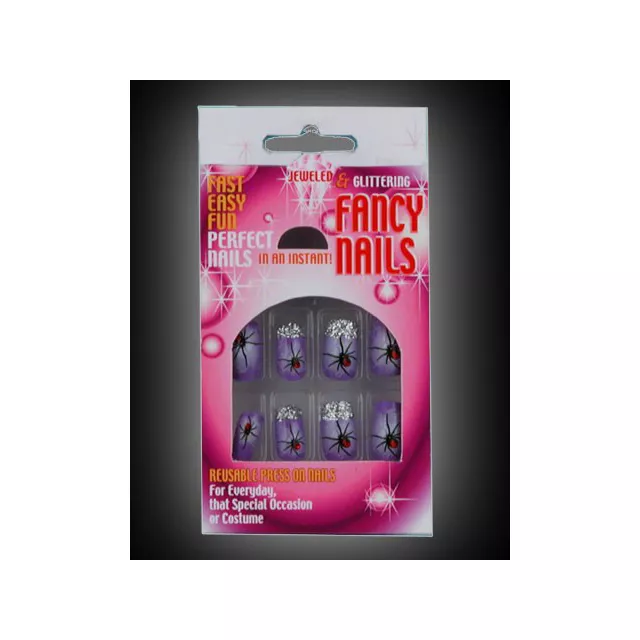 These dazzling purple Spider Nails are a final yet enigmatic finishing touch to any witch costume, sorceress costume, or Goth costume. Four included accent nails have tiny, black spiders that catch the eye with a dazzling red jewel body, and a swipe of silver glitter across the top of the nail to add some glam to your get-up. Pair with our spider earrings and choker for a glamorous Spiderella look!