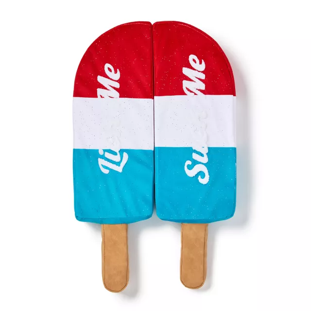 Cool down your space with this exclusive Detachable Lick Me Popsicle Plush Set! This set includes two detachable red, white, and blue popsicle plushies with the words "Suck Me" and "Lick Me" written on them!