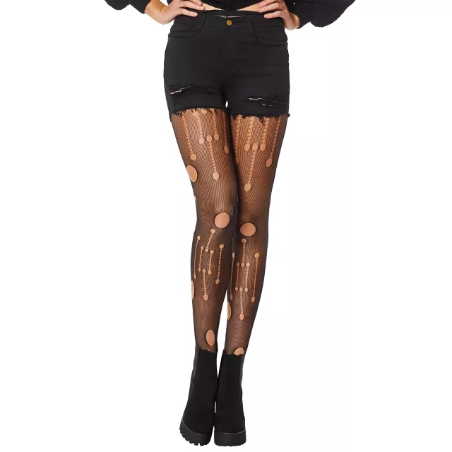 Your legs will be front and center with these stylish black distressed stockings! With its circular and vertical cutouts, this black hosiery is sure to turn heads.