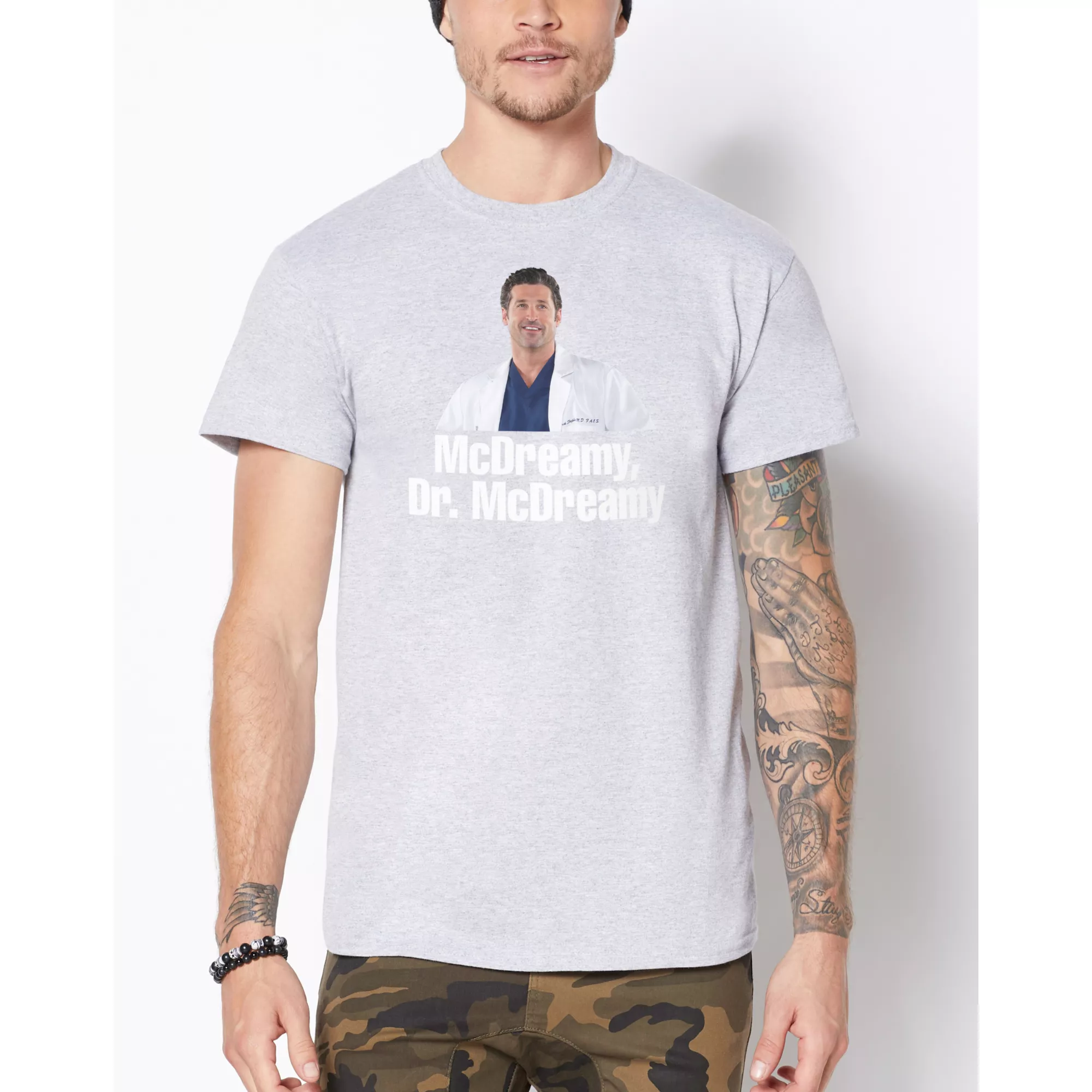 Name a cuter surgeon than Derek Shepherd. I'll wait. This officially licensed Doctor McDreamy T Shirt is a must-have for fans of the hit series Grey's Anatomy!