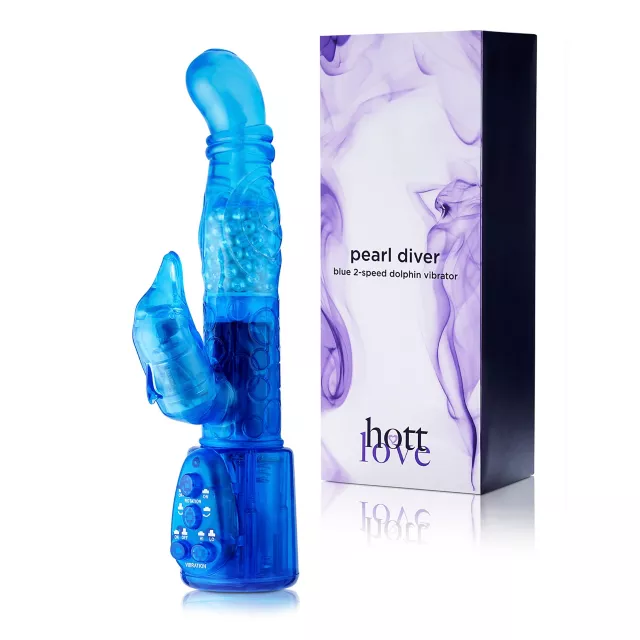 This high-powered, multi-speed vibe gyrates wildly to give you exactly what you most crave. Intensify your personal pleasure time with this Hott Love Pearl Diver Dolphin G-Spot Vibrator, which is designed to arouse your G-spot while also making sure your clit gets plenty of attention. Don't you want the best of both worlds in bed? This sex toy features dual-reversible rotation and a jelly soft flexible texture. Adjust the speed according to your preference, then lie back and let the amazingly powerful movements blow your mind!