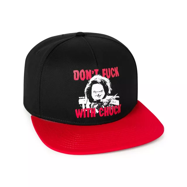 Rep your favorite horror icon when you don this officially licensed Don't Fuck with Chuck Snapback Hat! This exclusive, stylish snapback's eye-catching red accents and Chucky decal will let everyone know that you have the best taste in fashion AND horror films.