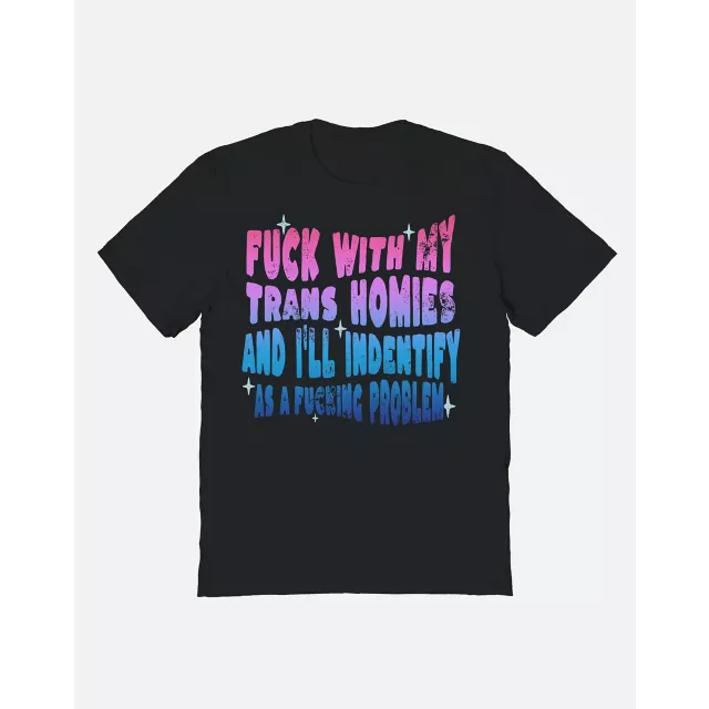 Fuck with my trans homies and I'll identify as a fucking problem! Protect the trans folks in your life with this Don’t Fuck with My Trans Homies T Shirt.