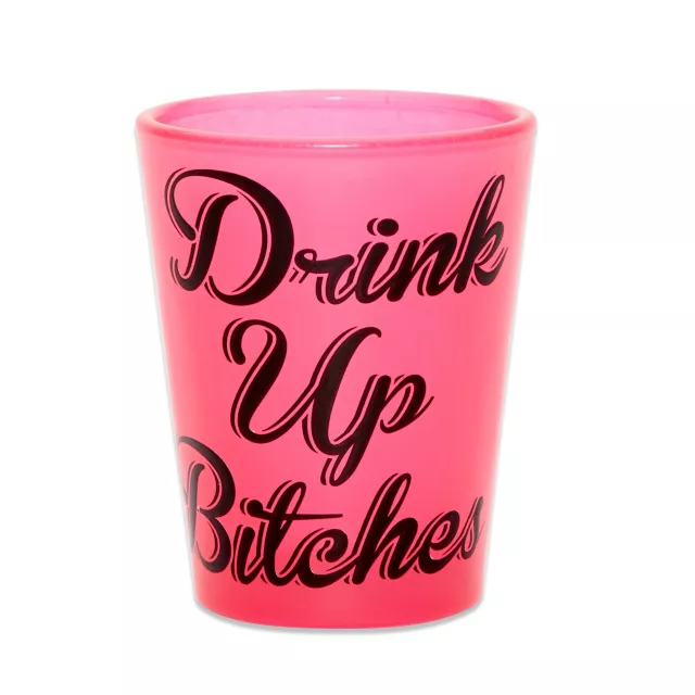 Drink up bitches it's party time! You'll love taking shots from this Drink Up Bitches shot glass.