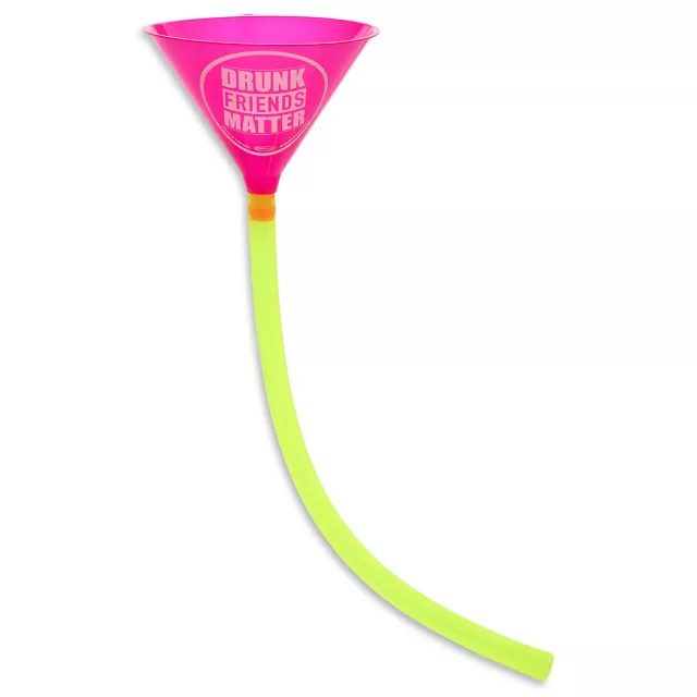 Get the party started with this Drunk Friends Matter Beer Bong! This eye-catching pink and yellow funnel and tube set is perfect for a wild night out with friends.