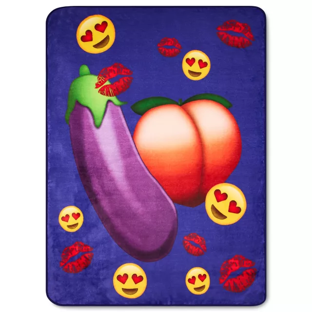 Let your décor reflect your cheeky side when you show off this Eggplant and Peach Emoji Fleece Blanket! Between its decadent, deep purple fleece and not-so-subtle messaging, this blanket is perfect for making a statement.