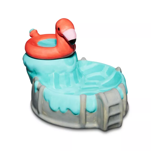 Missing summer? This Stash Jar and Ashtray combo is the perfect thing to help brighten up your home. The Flamingo Pool Float on top of the pool pops off and is the lid to a stash jar that can hide all of your favorite goodies.