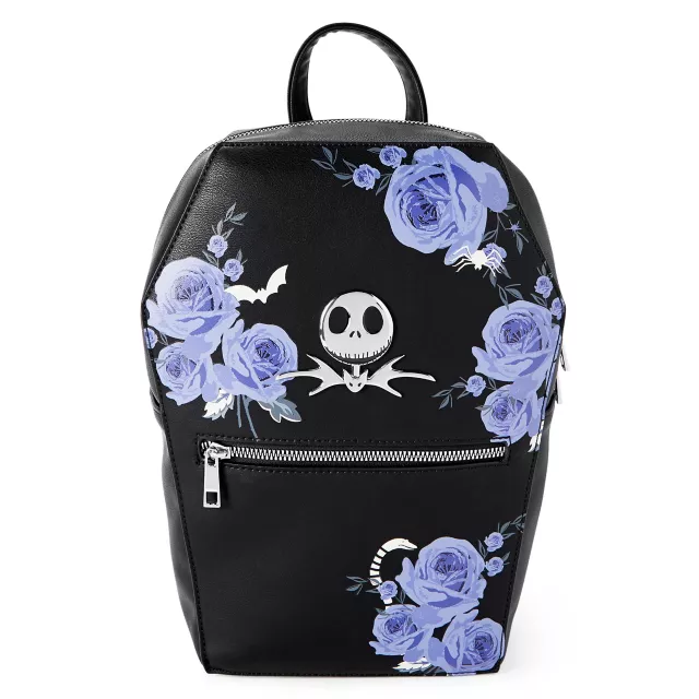 Accessorize your casual look with some spooky style when you carry all of your essentials in this officially licensed Floral Coffin Jack Skellington Backpack. Any fan of The Nightmare Before Christmas will adore wearing this backpack whether you're at school, work, or staying with a friend. The outside zipper pocket and inside pocket provide plenty of space for any situation and the coffin shape gives it that perfect Halloween touch.