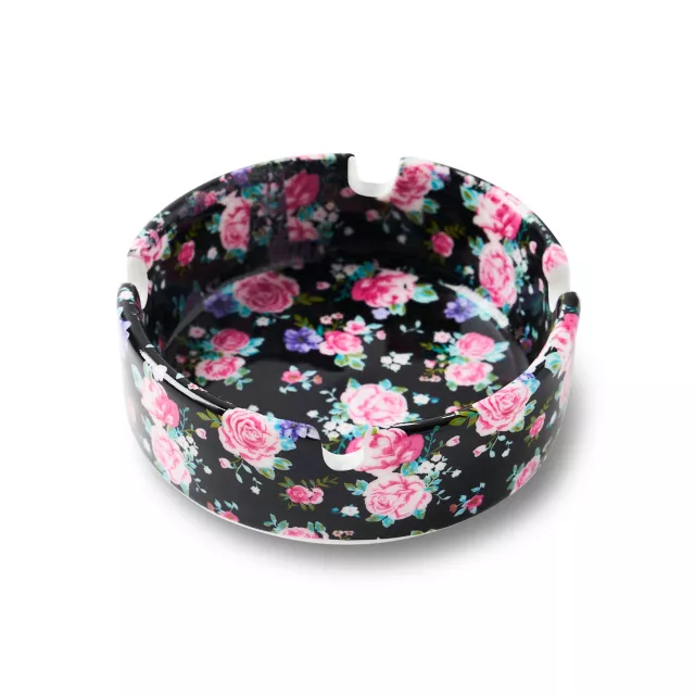 Upgrade your smoke style with this floral and fashionable ashtray! Flower pattern against a black ashtray makes for the perfect mix of pretty and powerful. Light up like a boss.