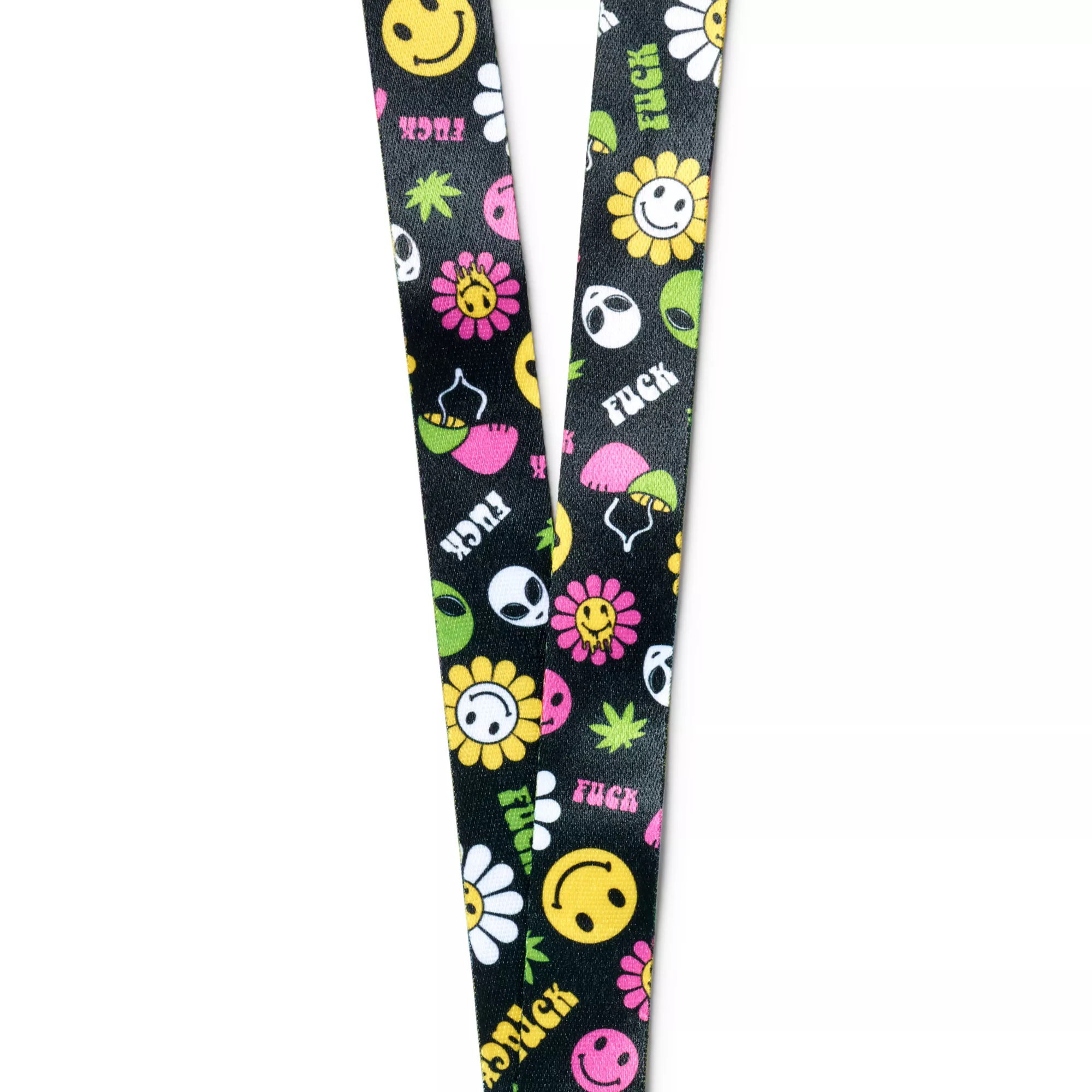 Boost your style and never lose your ID again with this epic lanyard. Featuring two daisy keychains and the word "fuck" written all over, this lanyard is a perfect match for you.