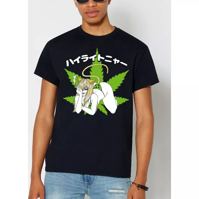 Elevate your style in this purrr-fect graphic tee. With a splash of green leafy goodness and a sexy cat woman, this t shirt is high on style.