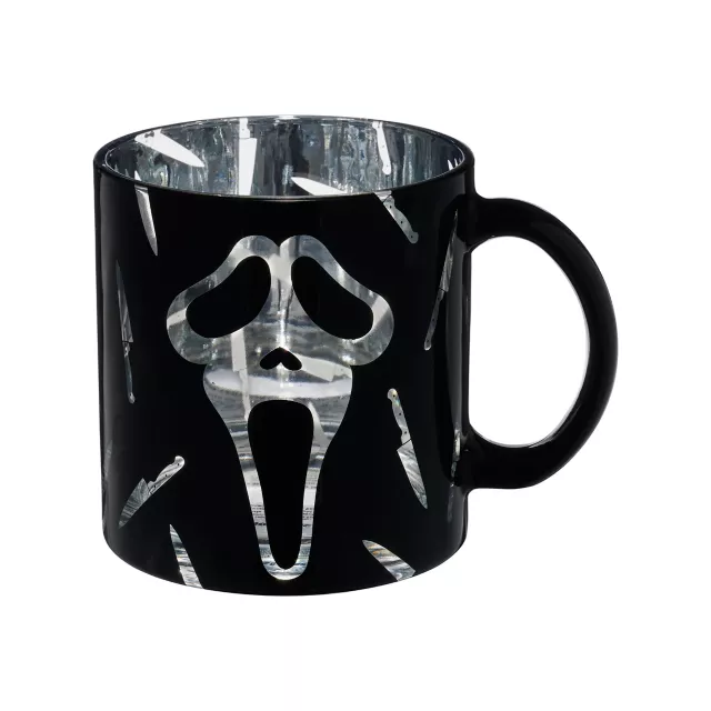 Say goodbye to those morning scaries and celebrate your favorite horror villain with this officially licensed Ghost Face Knife Glass Coffee Mug. Featuring cutout images of Ghost Face's mask and weapon of choice, this mug is exactly what you need to cut through your morning dreariness.
