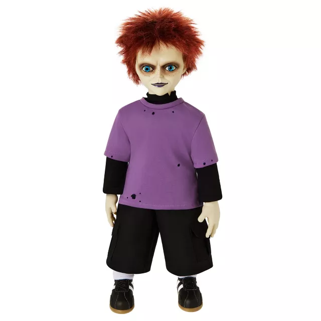 Add the child of Chucky and Tiffany to your collection with this 24" tall Glen doll! Glen's uniquely menacing features and disheveled red hair leave no doubt that they are the child of cold-blooded killers. With a distressed purple t shirt, black shorts, and casual sneakers, this Glen doll looks just like the Seed of Chucky star. Glen comes packaged in their very own box making them the perfect collectible for any horror fanatic!