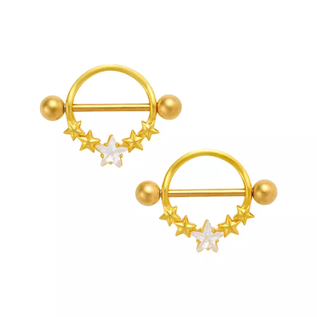 Gold-Tone CZ Star Nipple Shields - 14 Gauge