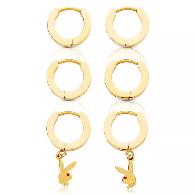 Goldtone CZ Playboy Bunny Hoop Huggie Dangle Earrings - 3 Pack