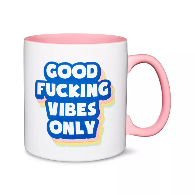 No frowns allowed in your house? Let everyone know with this funny Good Fucking Vibes Only coffee mug!