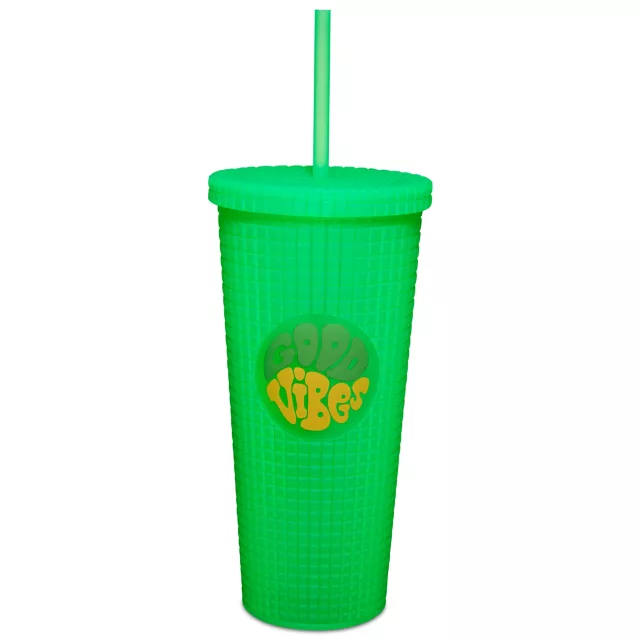 Liven up your drinkware collection with this Good Vibes Textured Cup with Straw! This adorable, bright green cup is sure to dazzle onlookers wherever you go.