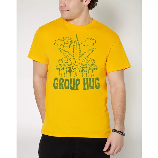 Show off your appreciation for your best buds with this cool Group Hug T Shirt. This funny tee features a weed leaf and shrooms embracing in friendship on the front and will make a hilarious addition to any stoner's tee collection.