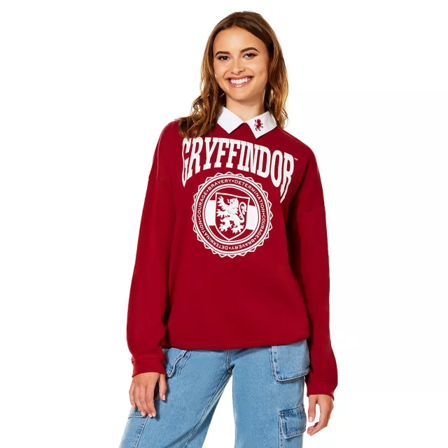 Show your Gryffindor pride in style with this officially licensed Gryffindor Collared Crewneck. Join the brave and courageous in the wizarding world.