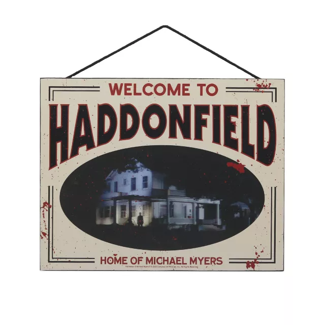 Decorate your home this Halloween with this officially licensed Welcome to Haddonfield Sign and trick-or-treaters will definitely think twice about knocking on your door. This sign is a perfect way to pay homage to one of your favorite classic slasher films and is sure to put a smile on any Michael Myers fan's face.