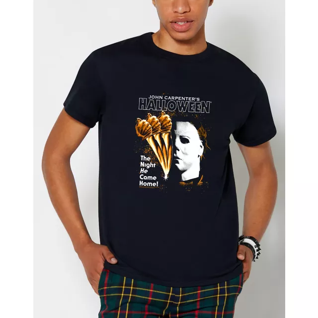 You'll never forget about the night that HE came home when you add this officially licensed Halloween Poster T Shirt to your collection. Make this classic t shirt featuring MIchael Myers on the front a part of your regular wardrobe and you'll always be showing your fandom for your favorite horror slasher.