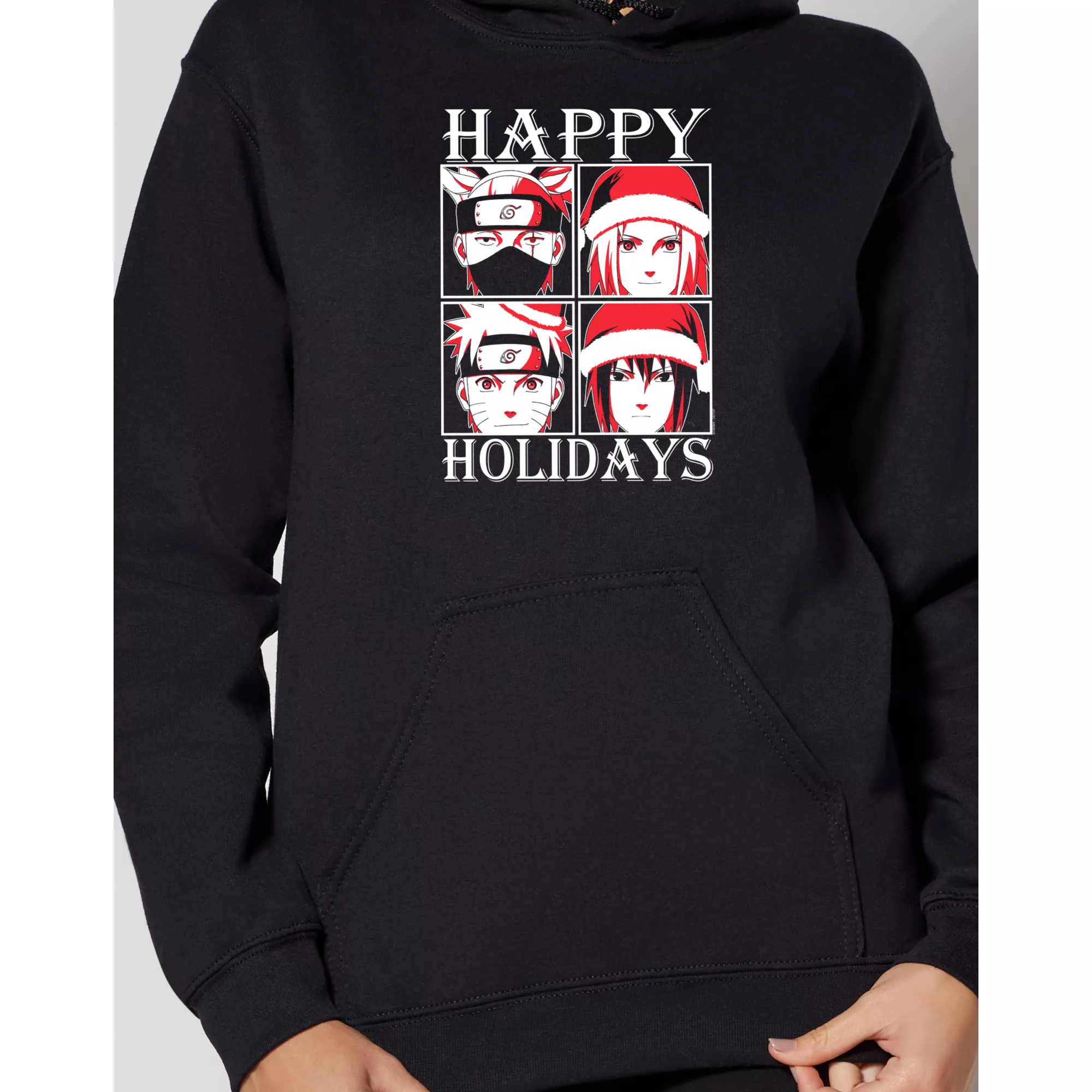Celebrate the holidays next to your favorite Naruto Shippuden characters! This soft black hoodie is a must-have for chilly nights and long Naruto Shippuden binge-watching sessions.