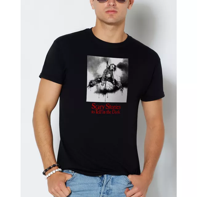 When two farmers build a scarecrow, they don't expect it to come to life. Recount the bone-chilling tale of Harold the horrific scarecrow from Scary Stories to Tell in the Dark in this officially licensed t shirt!