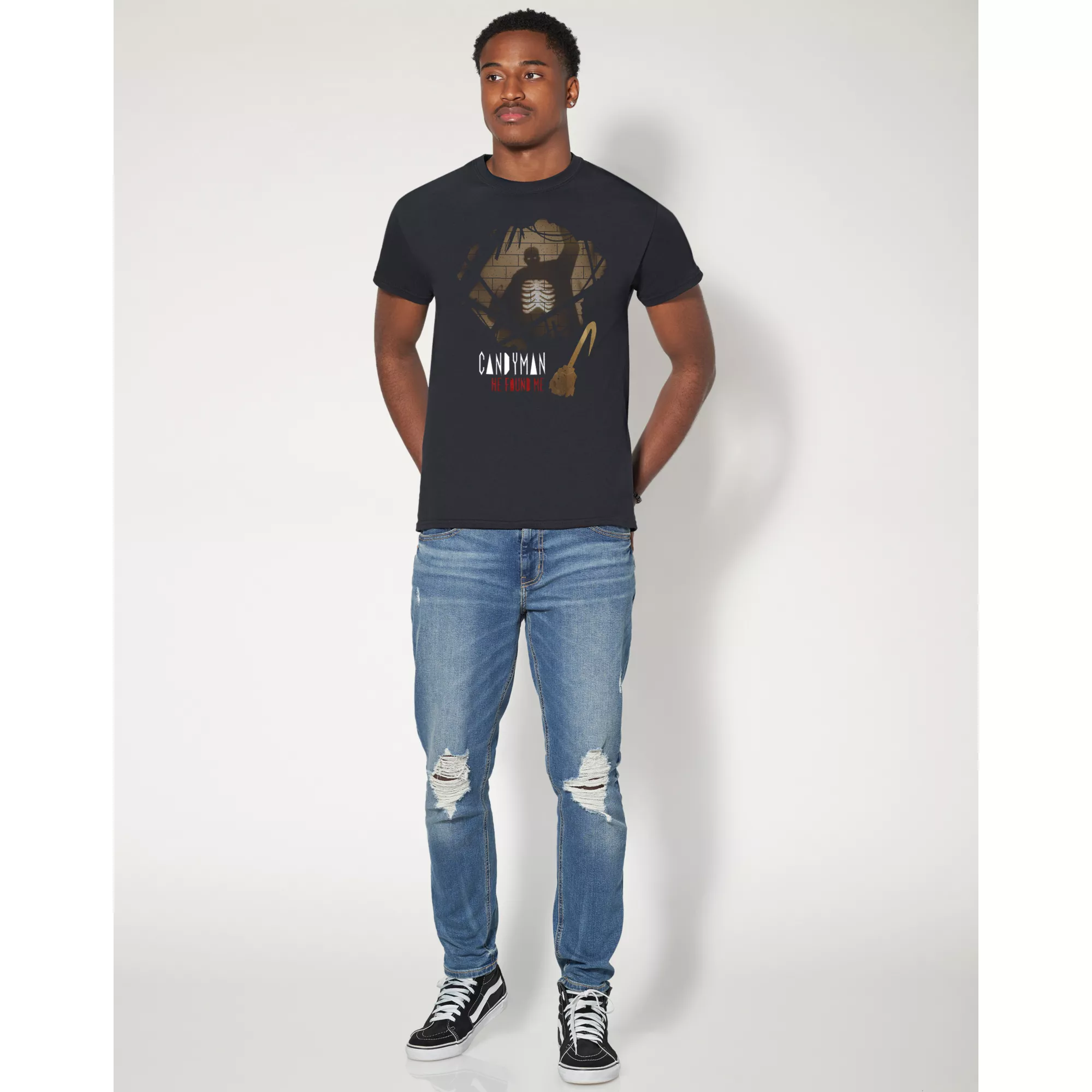 You can't run from the Candyman! With this He Found Me T Shirt you'll always be showing you're a horror movie fan. Show off your spooky side anywhere you go by adding this officially licensed Candyman tee to your casual look.
