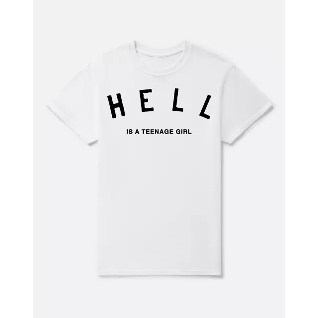 Hell is a teenage girl! Show your love for Nessa Barrett in this crisp white graphic tee with lyrics on the front and a moody picture of Nessa on the back.