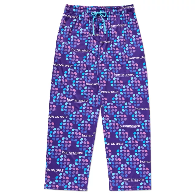 Bury those bad feelings and be happy with Humanzapro, the first solution for chronic misery made from human happiness! Show love for your favorite video game and elevate your wardrobe with these officially licensed High On Life 2-inspired lounge pants. Cozy and stylish, these bottoms feature the iconic logo of the fictional alien drug printed all over. Put them on and prepare to save humanity one mission at a time!