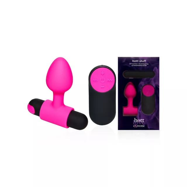 Experience total backdoor bliss with the Hott Stuff vibrating silicone butt plug! This thrilling sex toy has 4 speeds and 7 vibration functions can be used with the included remote control to give you and your partner a whole new way to enjoy intimacy. All you need is some water-based lube (sold separately) and you're ready to discover how good this vibrating anal plug feels!