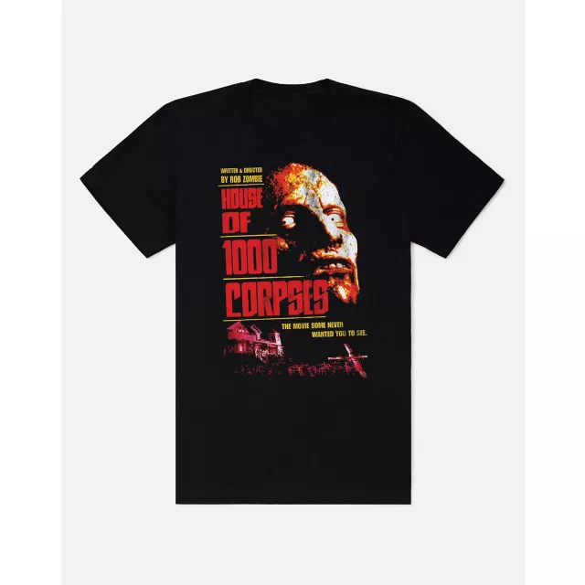 Show off your favorite horror comedy film with this House of 1000 Corpses t shirt! This bold black graphic tee is sure to be a conversation starter.