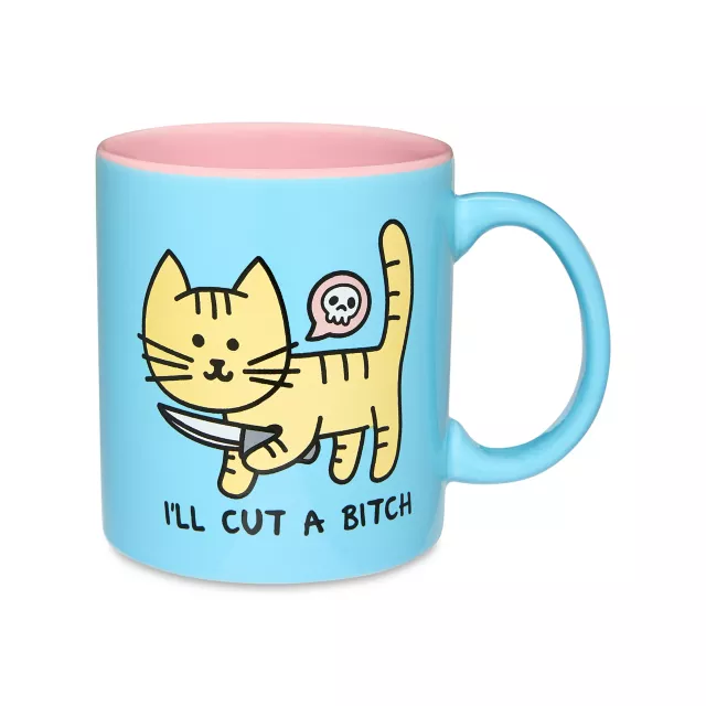 Looking for a mug that's both cute and cutthroat? This exclusive I'll Cut a Bitch Cat Coffee Mug is calling your name. Made with soft new bone china and fashioned with an adorable cat decal, this cup is an absolute must.