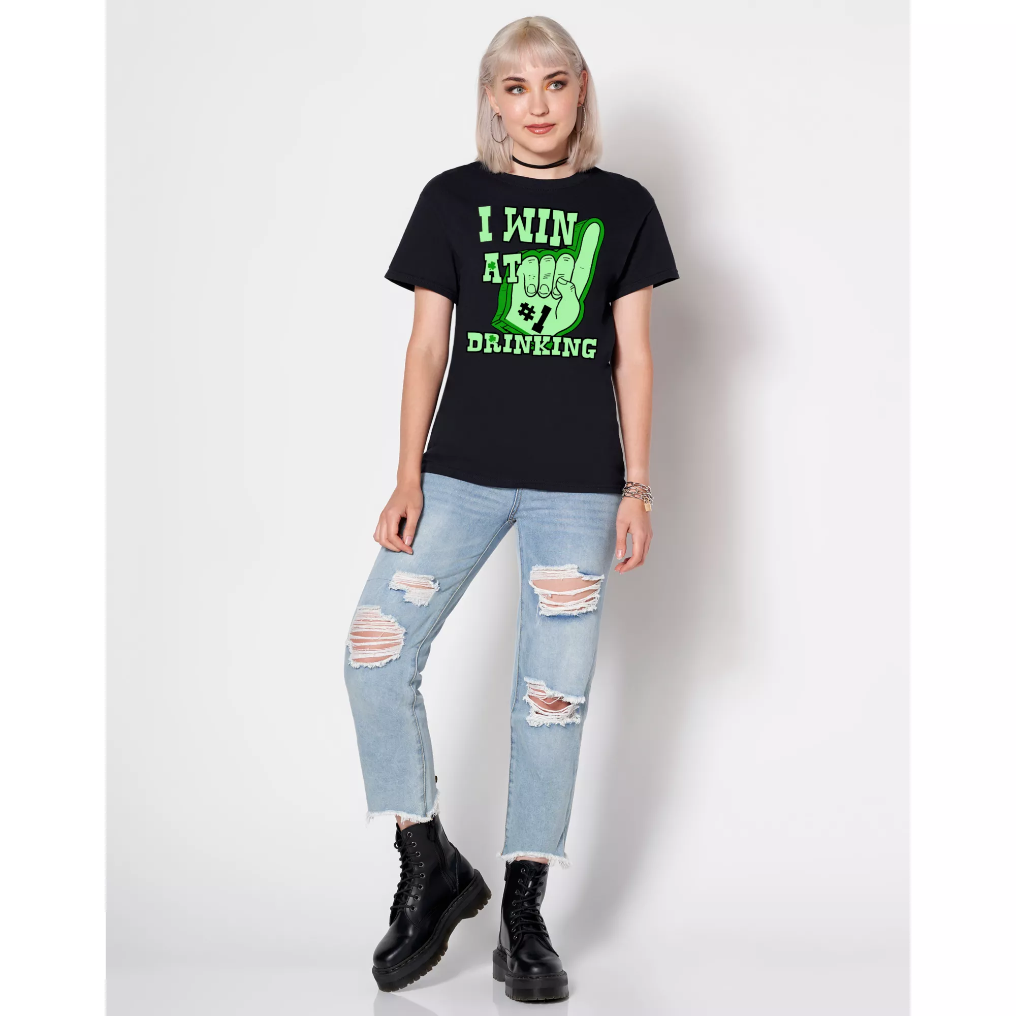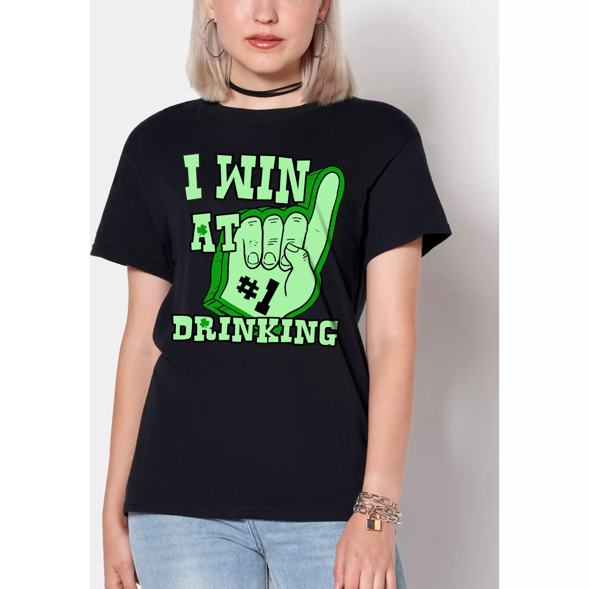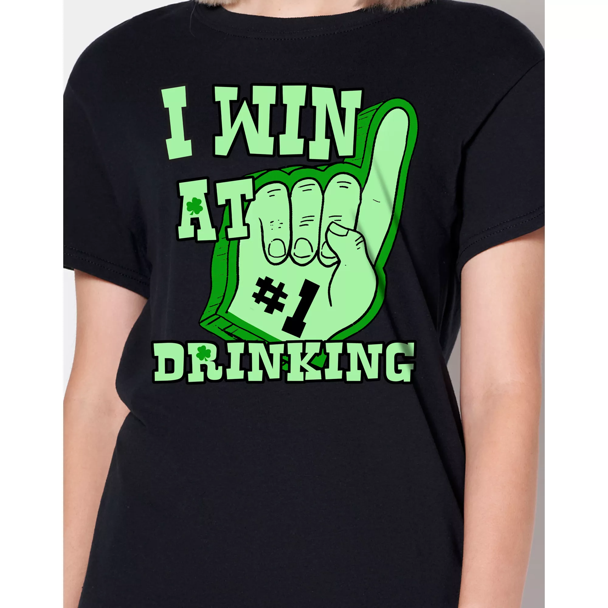 Drinking champion? Let everyone at the bar know you rule with this I Win At Drinking t shirt! This funny graphic tee is the perfect gear for St. Patrick's Day or any time you want to get loaded.