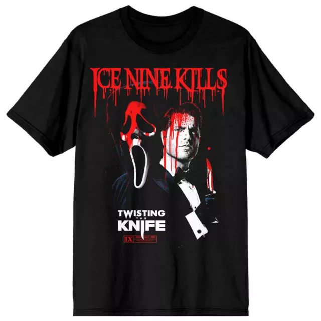 Add an instant classic to your wardrobe with this Ice Nine Kills Twisting the Knife t shirt. This graphic tee combines the thrill of Ghost Face with the metalcore melodies of Ice Nine Kills. Featuring chilling graphics printed on an easy-to-style, casual black t shirt, this piece is a must-have.