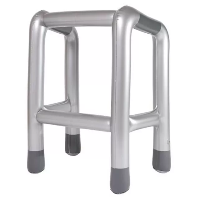 The perfect gag gift for a milestone or retirement party. It used to be an inflatable cane, now easily inflated this modern day walker. Each piece inflates to 13 1/2" high by 10 3/4" wide.