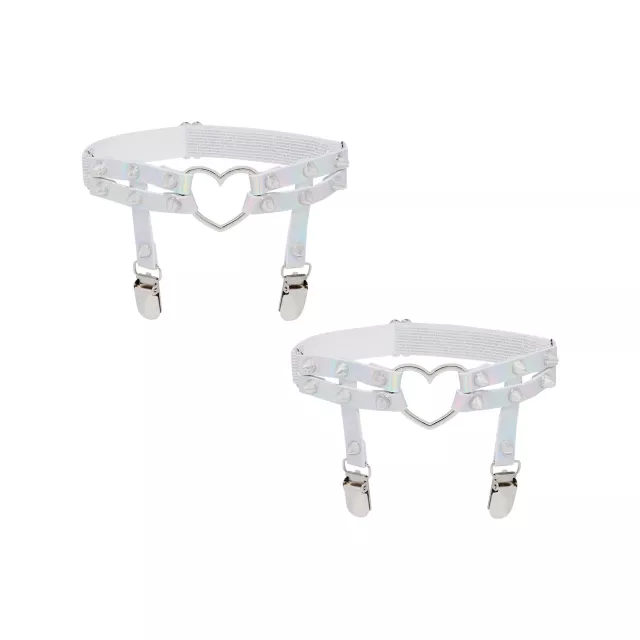 Looking to accessorize in a way that's both sexy and sweet? These Iridescent Heart Garters are just what you've been looking for! Complete with eye-catching opalescent hues and adorable heart accents, these garters are sure to drive your partner wild and have you feeling as cute as can be.