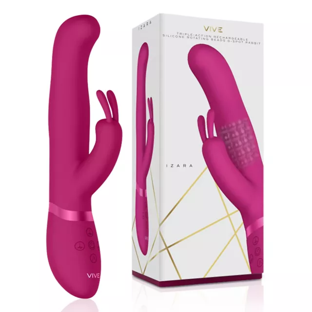 Indulge in sexual satisfaction every time you use this powerful Izara rechargeable waterproof G-spot rabbit vibrator! This vibe has 10 different modes of vibration, so you can pick your favorite, plus a curved tip to stroke your G-spot. These sleek, sensual sex toy is the perfect way to reach your peak in bed or the bath or shower.