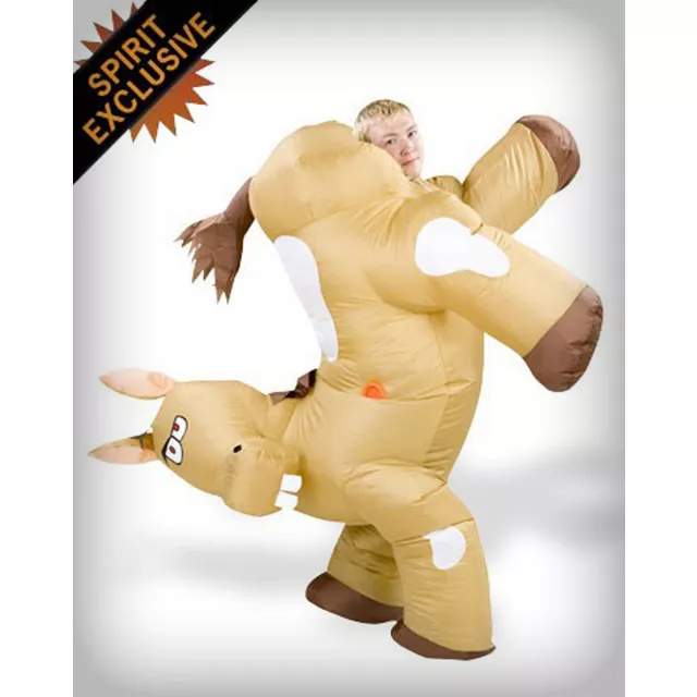 Make an "ass" of yourself--literally--in this inflatable Jackass costume! As soon as you trot into the room in this funny costume, consisting of a brown donkey suit with rear end on full display, you'll have them all kicking up their heels and "hee-hawing" with laughter.