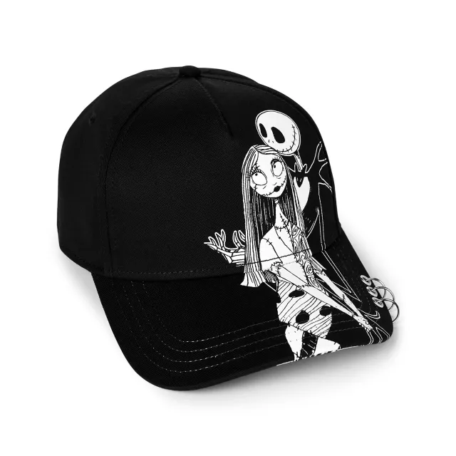 Show off your favorite movie couple with this black and white Jack Skellington and Sally snapback hat! With its stylish hardware, this fun The Nightmare Before Christmas hat adds the perfect touch of movie style to any outfit.
