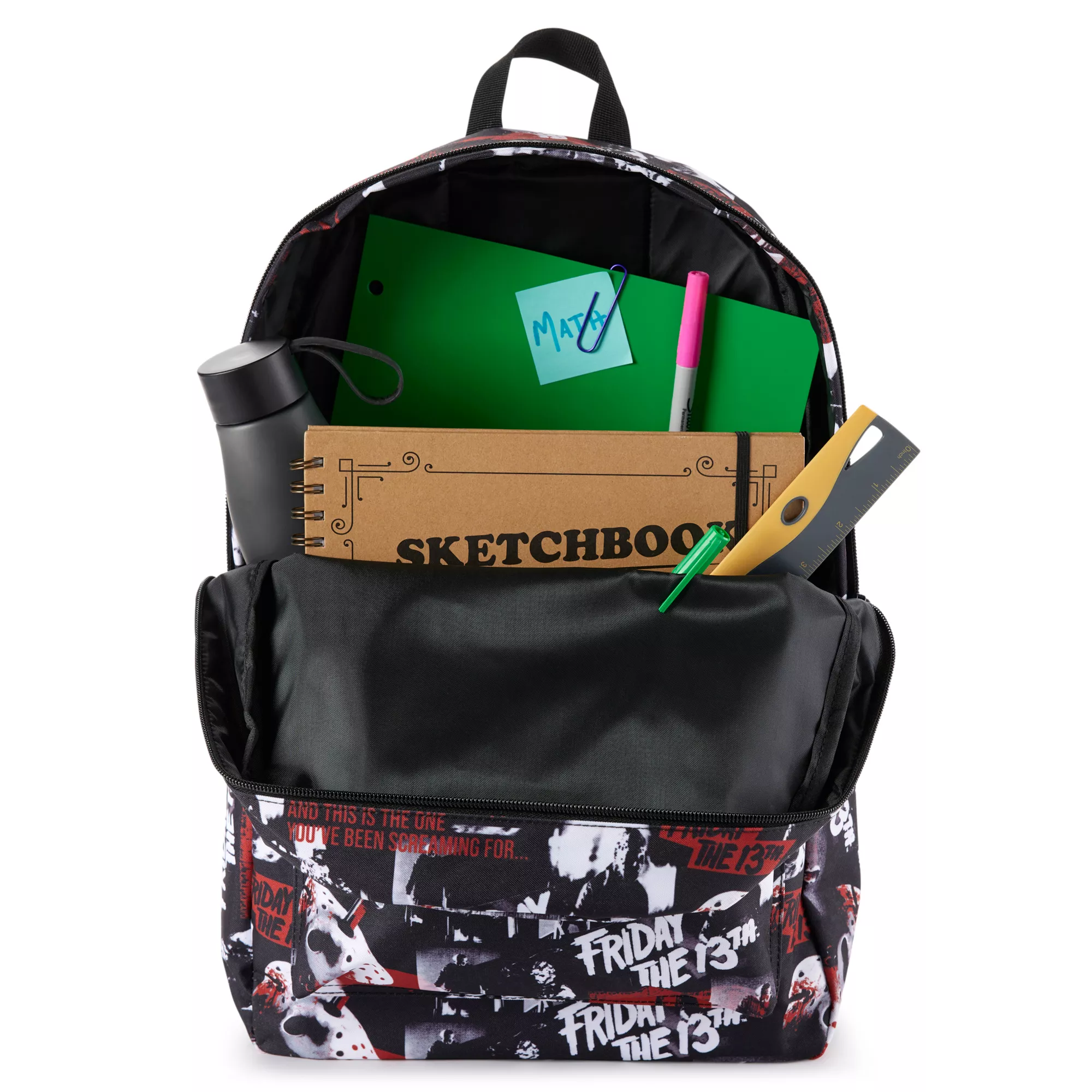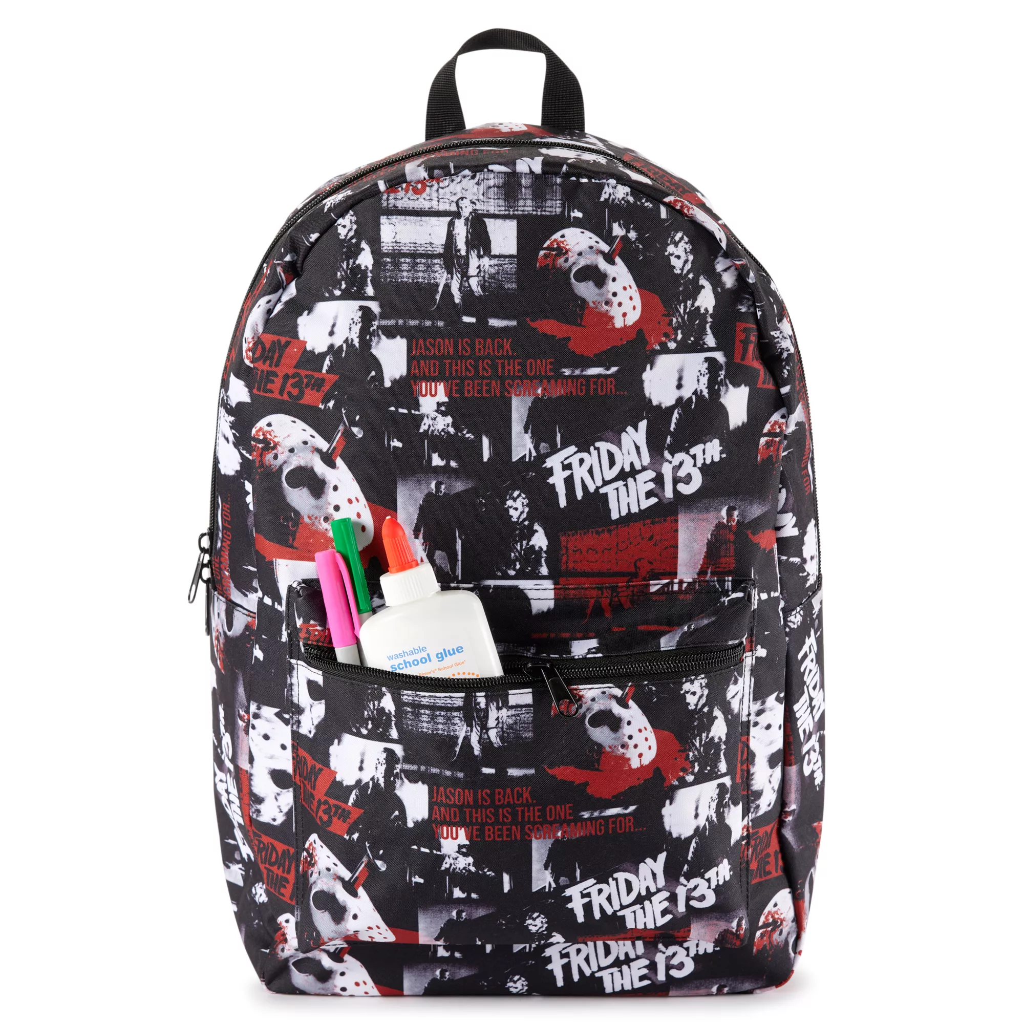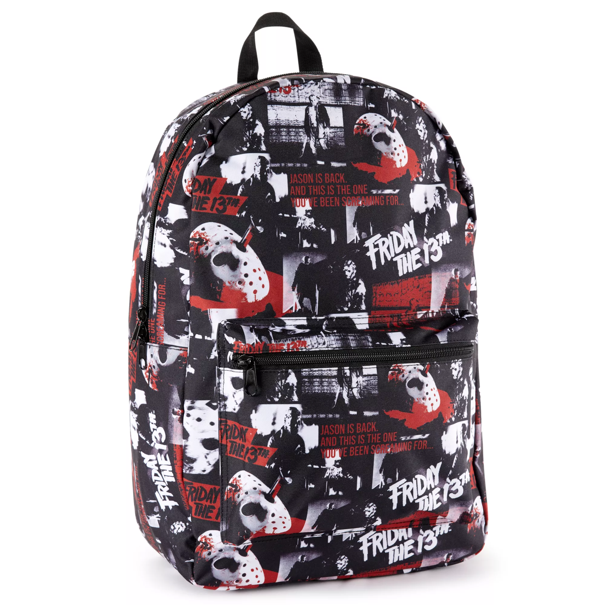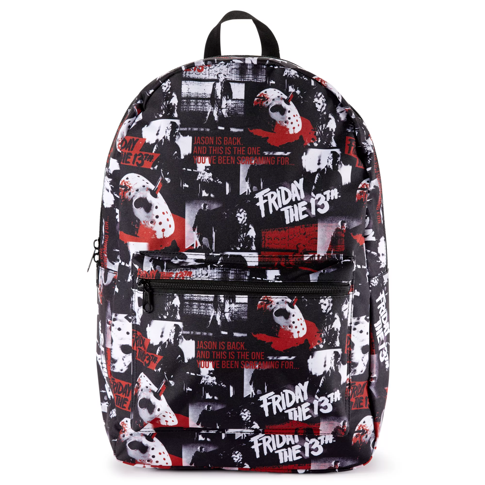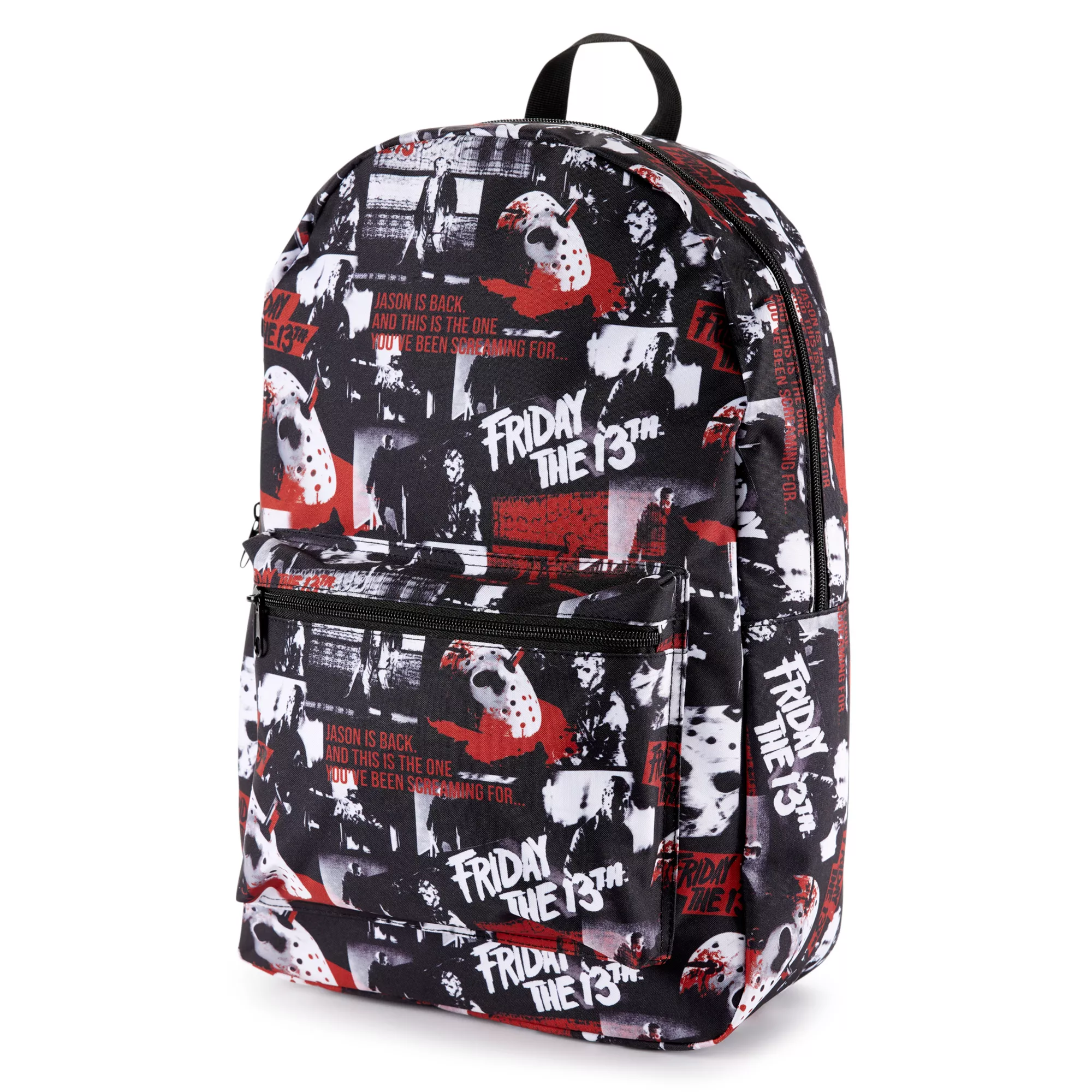 Show everyone you're ultimate slasher fan when you rock this Jason is Back Print Backpack. This officially licensed backpack is a must-have for fans of the horror genre. Featuring a cool Jason print all over and an outside zip pocket for storage, you'll be looking killer in class while wearing this awesome backpack.