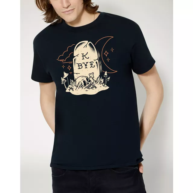 Us after any minor inconvenience: K bye. Show off some funny vibes with this K Bye Tombstone T Shirt. With original artwork from Mindless Designs, this tee is perfect for all the drama queens and kings out there.