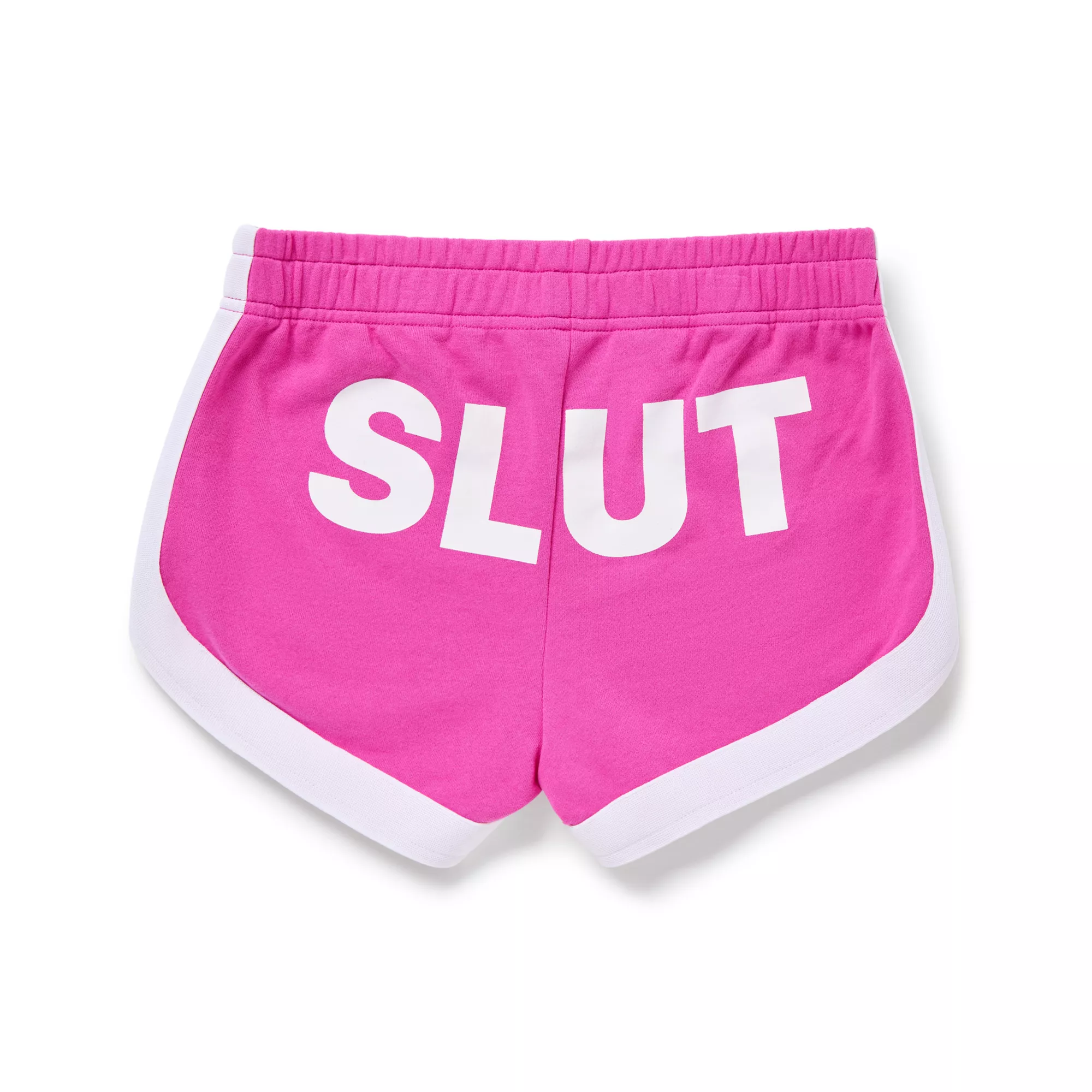 These official Kayla Malecc Slut Dolphin Shorts make the perfect fashion statement! Look totally stylish as you turn heads every time you wear this fun pink shorts.