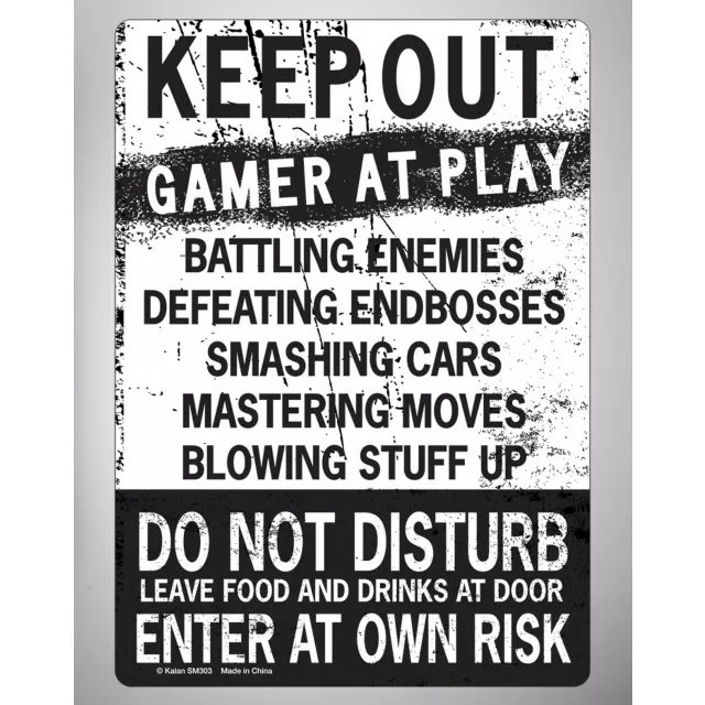 The have been warned. The Keep Out Gamer at Play Tin Sign wards off all your enemies, the roommates and moms who interrupt your play, so set it in your dorm room or basement and ward them off.