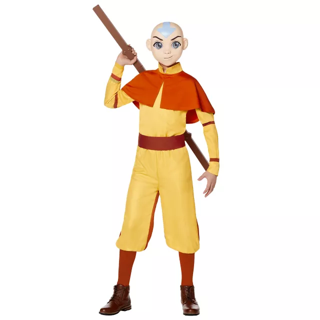 Dress up just like your favorite Air Nomad in this official Avatar: The Last Airbender Aang Costume! This exciting costume has everything you need to look sky-ready, including an Aang jumpsuit, poncho mask, belt and staff. Prepare to be as powerful as Aang when you wear this costume.